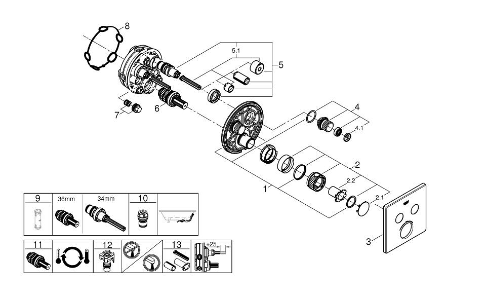HANSA HANSAELECTRA Nadomítková část podom. umyvadlové baterie, 3 V #81812101