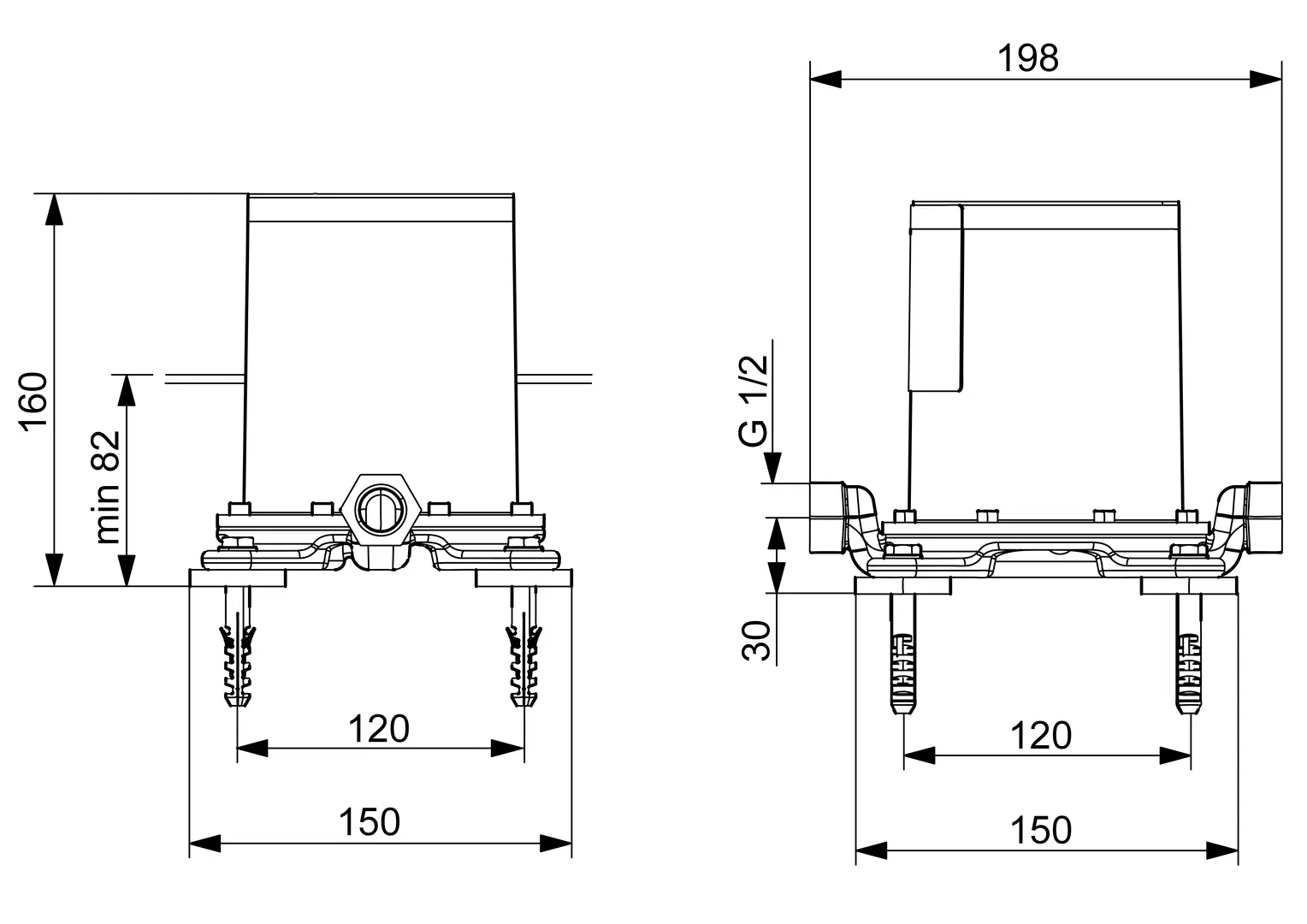 IDEAL STANDARD IDEALRAIN - Nástěnný připojovací oblouk 57x78x57 mm v černé barvě #BC807XG - Silk Black