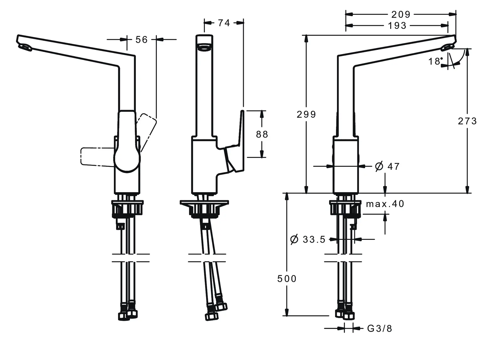 Vlastnosti Provzdušňovač CASCADE® aerátor Připojení Flexibilní připojovací hadice Páka/rukojeť Páka se symboly teplé a studené vody, Jedna ovládací páka / rukojeť Mechanické díly ø 35 mm keramická kartuše pro ovládání teploty a průtoku vody Speciální vlastnosti Tělo baterie z mosazi DZR, Povrchy přicházející do styku s pitnou vodou obsahují méně než 0,3 % olova, Vodní cesty bez poniklování Výtok Otočné výtokové rameno, Litá konstrukce Barva Černá matná Teplota Funkce pro nastavení maximální teploty a průtoku vody, Nastavitelný omezovač teploty vody (součástí dodávky, možnost dodatečné instalace) Vlastnosti průtoku Průtok při 3 barech 9 l/min Technické vlastnosti Zabezpečení proti zpětnému toku (ČSN EN 1717) AA Velikost přípojky G3/8 Velikost DN (jmenovitý rozměr) DN15 Zdroj teplé vody max. +80°C Materiál Mosaz Projekce 193 mm Pracovní tlak 0.5 - 10 bar Předpisy Norma EN EN 817 Třída hlučnosti I (ISO 3822) Udržitelnost EPD module A1 (kg CO2 eq.) 12,76 EPD module A1-A3 (kg CO2 eq.) 18,97 EPD module A2 (kg CO2 eq.) 0,61 EPD module A3 (kg CO2 eq.) 5,61 EPD module A4 (kg CO2 eq.) 0,38 EPD module B7 (kg CO2 eq.) 3546,00 EPD module C2 (kg CO2 eq.) 0,03 EPD module C3 (kg CO2 eq.) 0,03 EPD module C4 (kg CO2 eq.) 0,57 EPD module D (kg CO2 eq.) -10,73