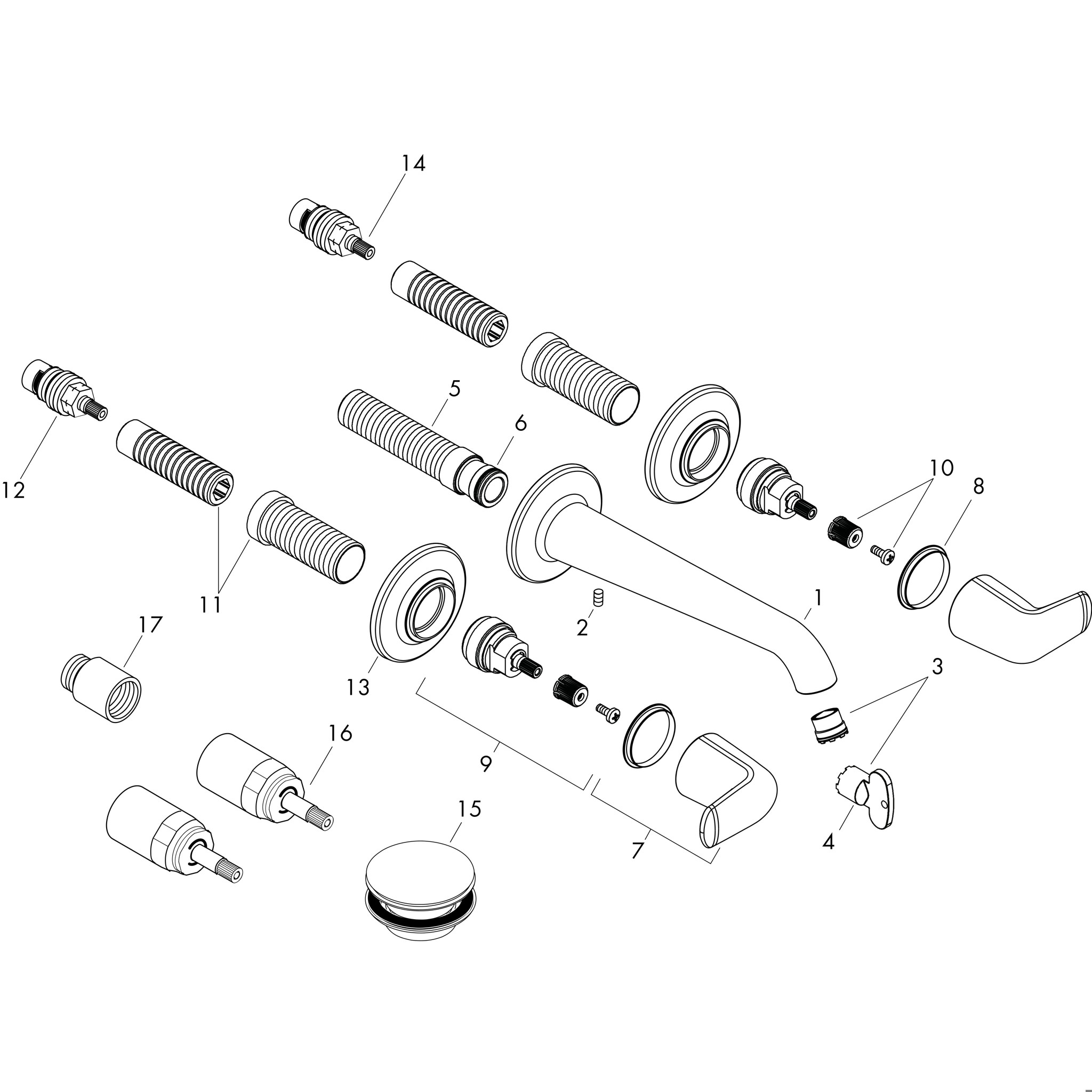 HANSGROHE AXOR Citterio Páková umyvadlová baterie 110 s kolíkovou rukojetí, s odtokovou soupravou s táhlem #39010000 - chrom