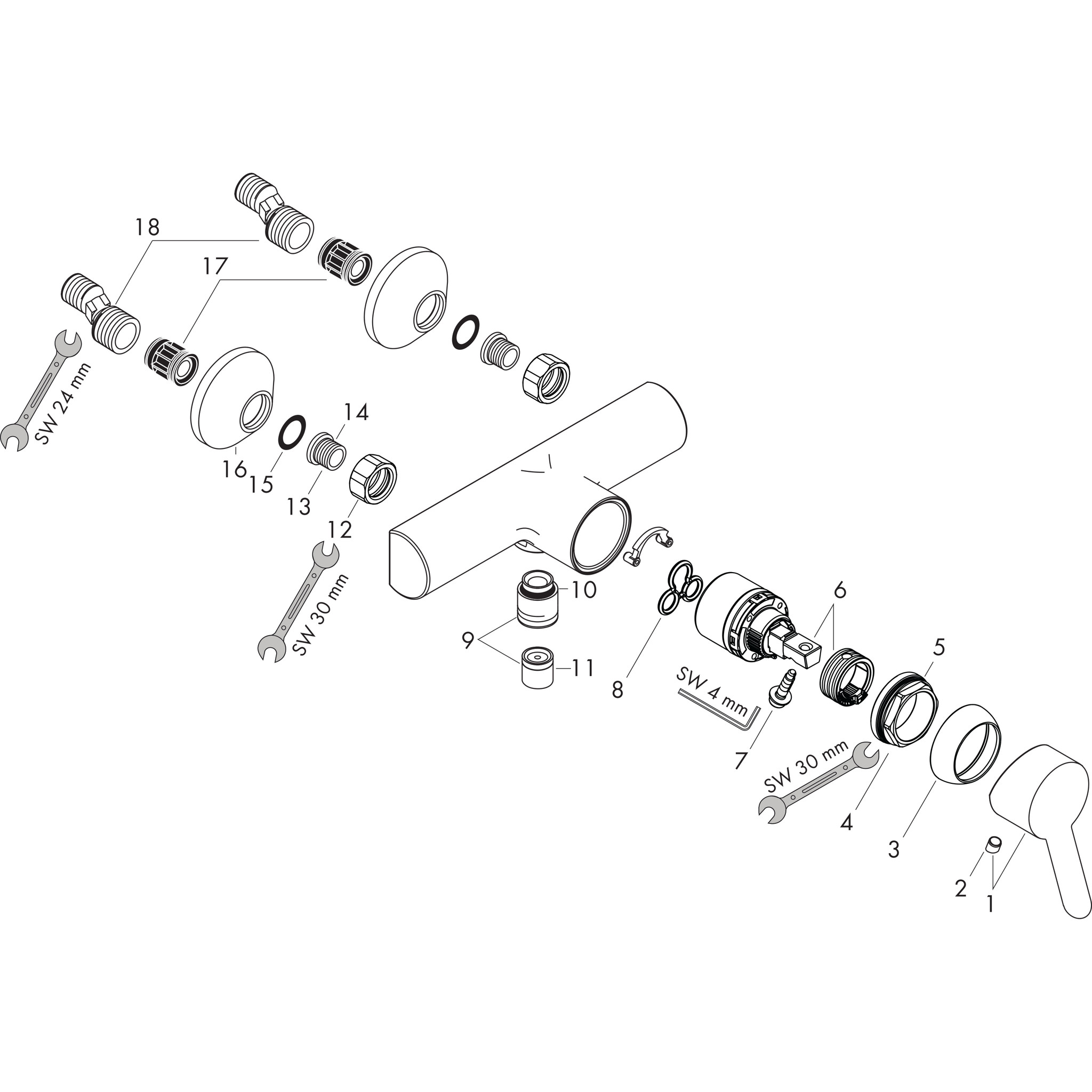 1 spotřebitel Rozteč: 150 ± 12 mm Maximální průtok při 3 barech: 22 l/min Keramický směšovací systém Nastavitelný omezovač teploty Zpětná klapka s tlumičem hluku Připojení hadice: DN15 Velikost přípojky: DN15 min. Provozní tlak: 1 bar Max. provozní tlak: 10 bar Typ připojení: S-přípojky