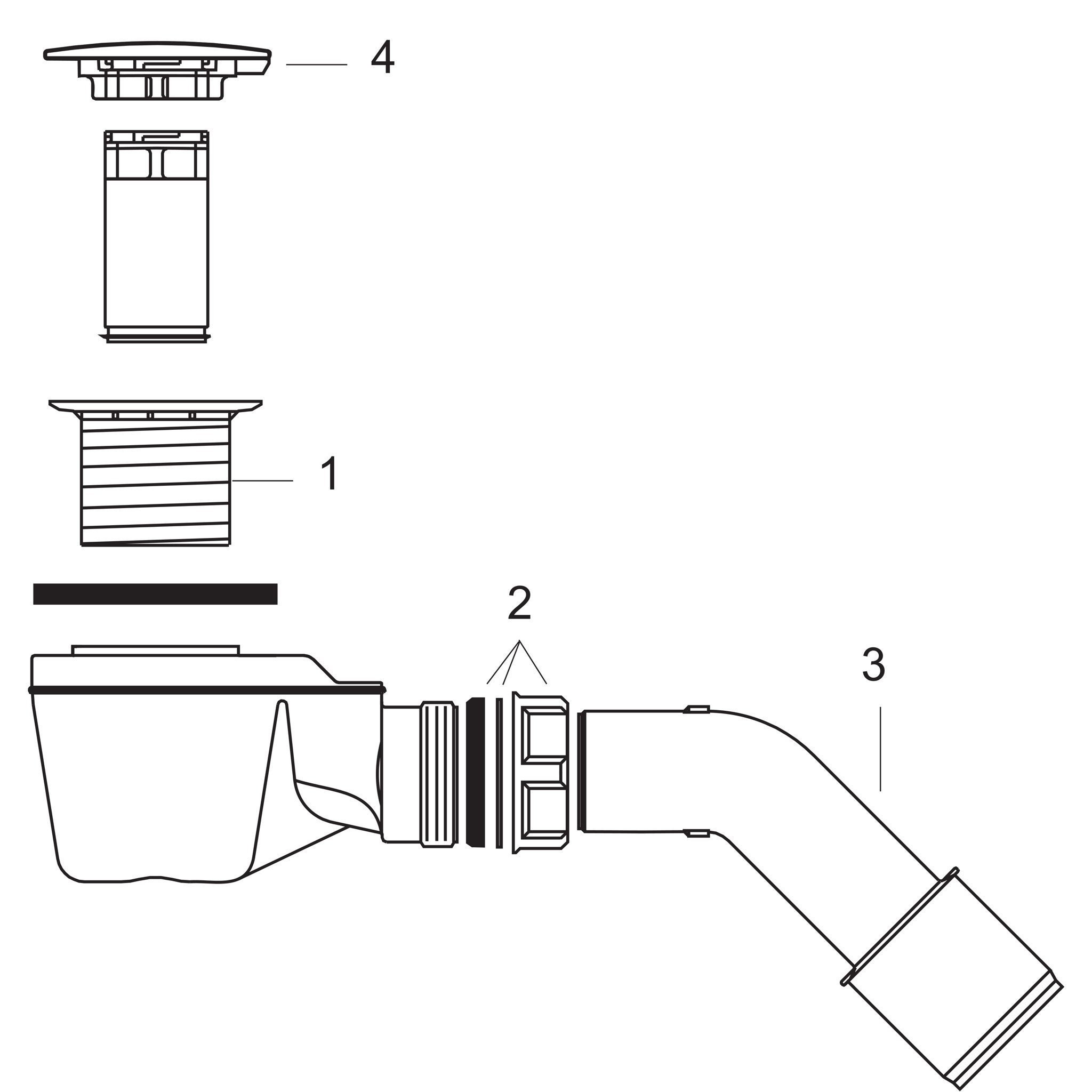se skládá z: Základní nástavba, dokončovací sada vhodné pro sprchové vaničky s odtokovou soupravou Ø 52 mm PE šroubová přípojka 40/ 50 mm Odtoková trubka Ø 50 mm Odtokový výkon 33 l/min při výšce hladiny vody 120 mm Výška sifonu: 50 mm Materiál sifonu: plast Materiál vypouštěcí zátky: nerezová ocel Samočisticí systém
