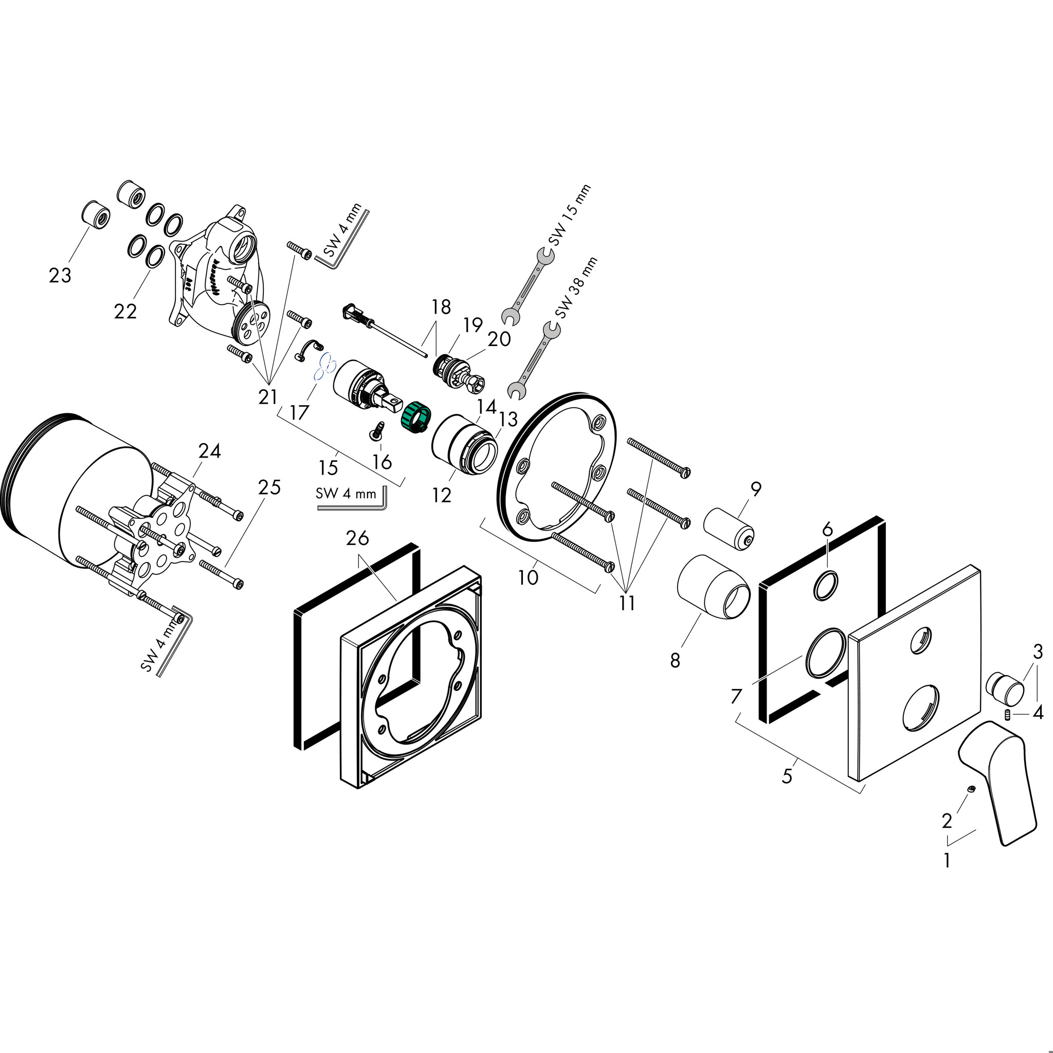 HANSGROHE Podomítková jednopáková vanová baterie Metris S pro iBox universal #31465000