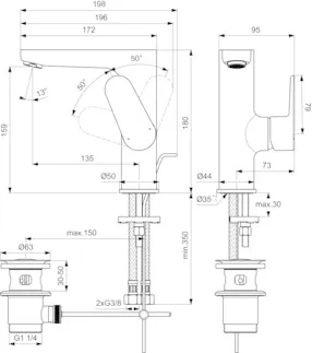 IDEAL STANDARD TESI - Umyvadlová baterie 50x200x301 mm, svislá vzdálenost od středu výpusti 140 mm, chrom, 5 l/min (3 bar), s výsuvným odpadem - EasyFix, perlátor, omezovač průtoku, EPD, FirmaFlow, povrch SmartShine #A6573AA - chrom