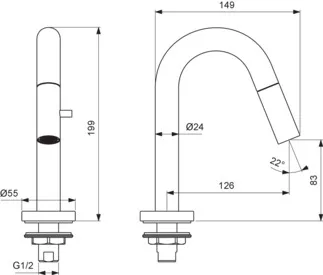 IDEAL STANDARD CERAFLEX - Umyvadlová baterie 47x160x133 mm, svislá vzdálenost od středu výpusti 101 mm, chrom, 5 l/min (3 bar), s výsuvným odpadem - EasyFix, perlátor, BlueStart, technologie Click, omezovač průtoku, EPD, FirmaFlow, povrch SmartShine #B1711AA - chrom