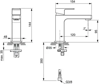 IDEAL STANDARD EDGE - umyvadlová baterie 48x188x169 mm, svislá vzdálenost od středu výpusti 138 mm, chrom, 5 l/min (3 bary), s výsuvným odpadem - EasyFix, perlátor, omezovač průtoku, EPD, povrch SmartShine #A7106AA - chrom