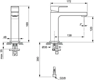 IDEAL STANDARD CERAFLEX - Umyvadlová baterie 47x170x159 mm, svislá vzdálenost od středu výpusti 110 mm, chrom, 3,8 l/min (3 bary), s výsuvným odpadem - EasyFix, perlátor, technologie Click, EPD, FirmaFlow, povrch SmartShine #B1713AA - chrom