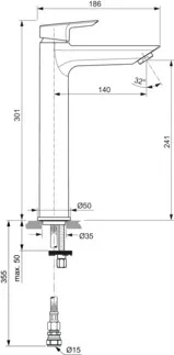 IDEAL STANDARD CERALINE - Podstavný ventil 55x199 mm, svislá vzdálenost od středu výtoku 126 mm, černý, 6 l/min (3 bary), bez výsuvného odpadu - Skrytý perlátor #F2842XG - Silk Black