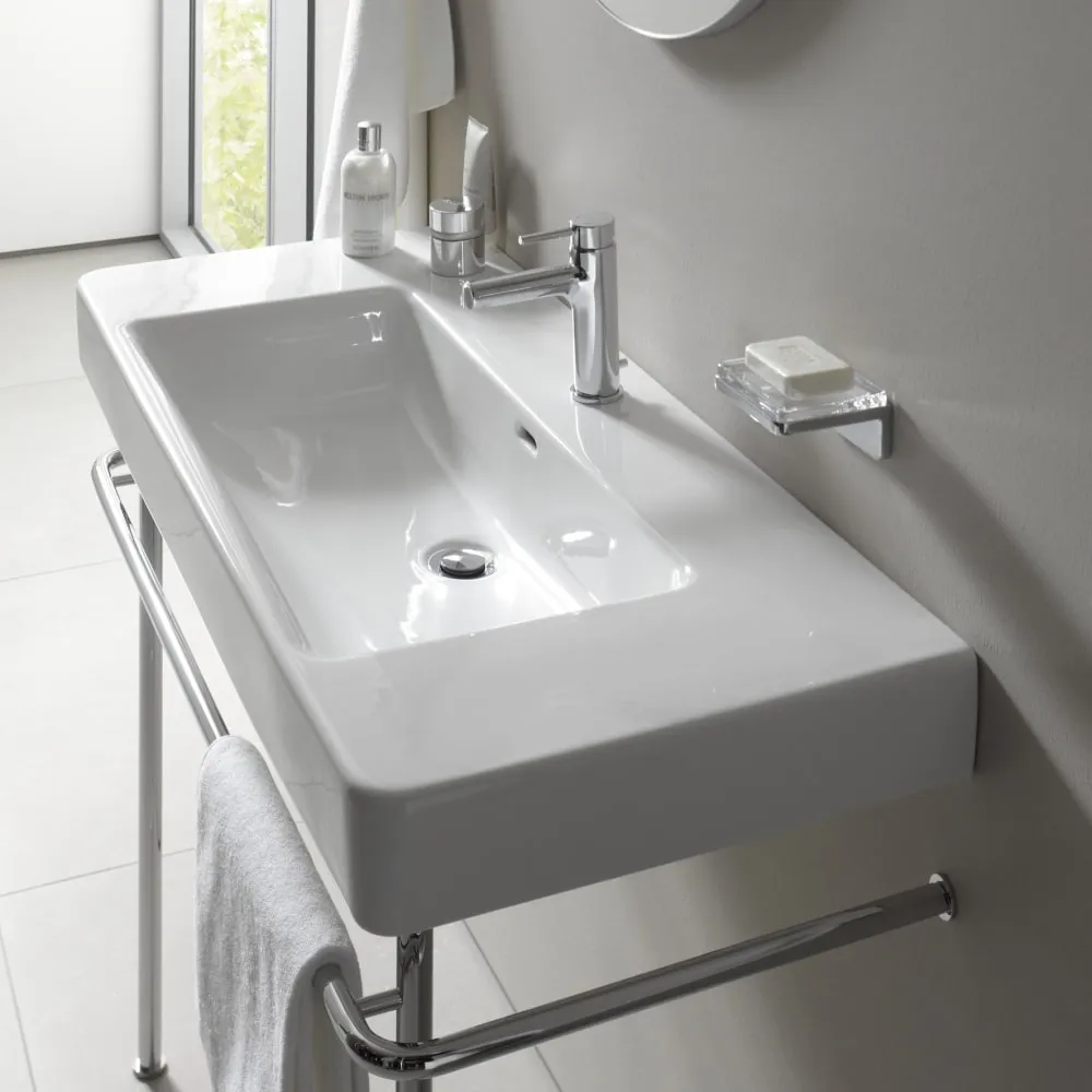 Rozměry: 1050 x 465 x 95 mm (délka, šířka, výška) Hmotnost netto (kg): 27.5 Materiál: Sanitární keramika Odkládací plocha Počet upevňovacích bodů: 2 Provedení: 1 otvor pro baterii, středový S glazovanou spodní stranou Tvar: Obdélníkový Typ instalace: Do nábytku, Závěsné Typ přepadu: Standardní Umístění odkládácí plochy: Na obou stranách Umístění umyvadlové mísy: Uprostřed Uspořádání otvorů pro baterie: 1 otvor pro baterii uprostřed Vnitřní délka umyvadla (mm): 675 Vnitřní tvar: Obdélníkový Vnitřní šířka umyvadla (mm): 285
