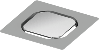 Sada nerezového rámu a roštu pro nalepení dlažby 100 x 100 mm zhotovené z nerezové oceli. Vnější průměr = 110 mm Výška = 1 mm (vhodné pro všechny tloušťky keramických/kamenných dlažeb) Rám roštu z nerezové oceli, materiál 1.4301 (304) Designový rošt z nerezové oceli, materiál 1.4301 (304), rozměry 91 x 91 mm, leštěný povrch, třída zatížení K3 (nosnost 300 kg)